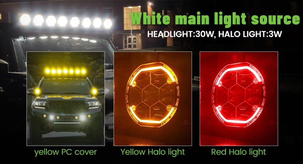 Warmer amber or yellow lights have longer wavelengths, which appears to cut through dust, fog, and other airborne particles. Thanks to how human eyes work and how certain light colors reflect off airborne particles, yellow off-road lights are excellent for extreme weather conditions.